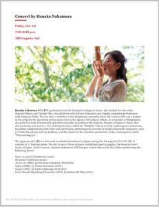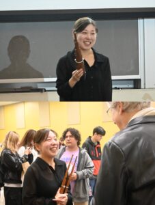 Hanako Nakamura’s Sho lecture concert was held at Ohio State University (OSU) in Columbus, USA on October 10, 2025, as part of the program of the Midwest Conference on Asian Affairs (MCAA), a conference bringing together researchers from the Midwestern United States on the topic of Asia. Many audience members remained at the venue after the performance to ask Hanako questions.